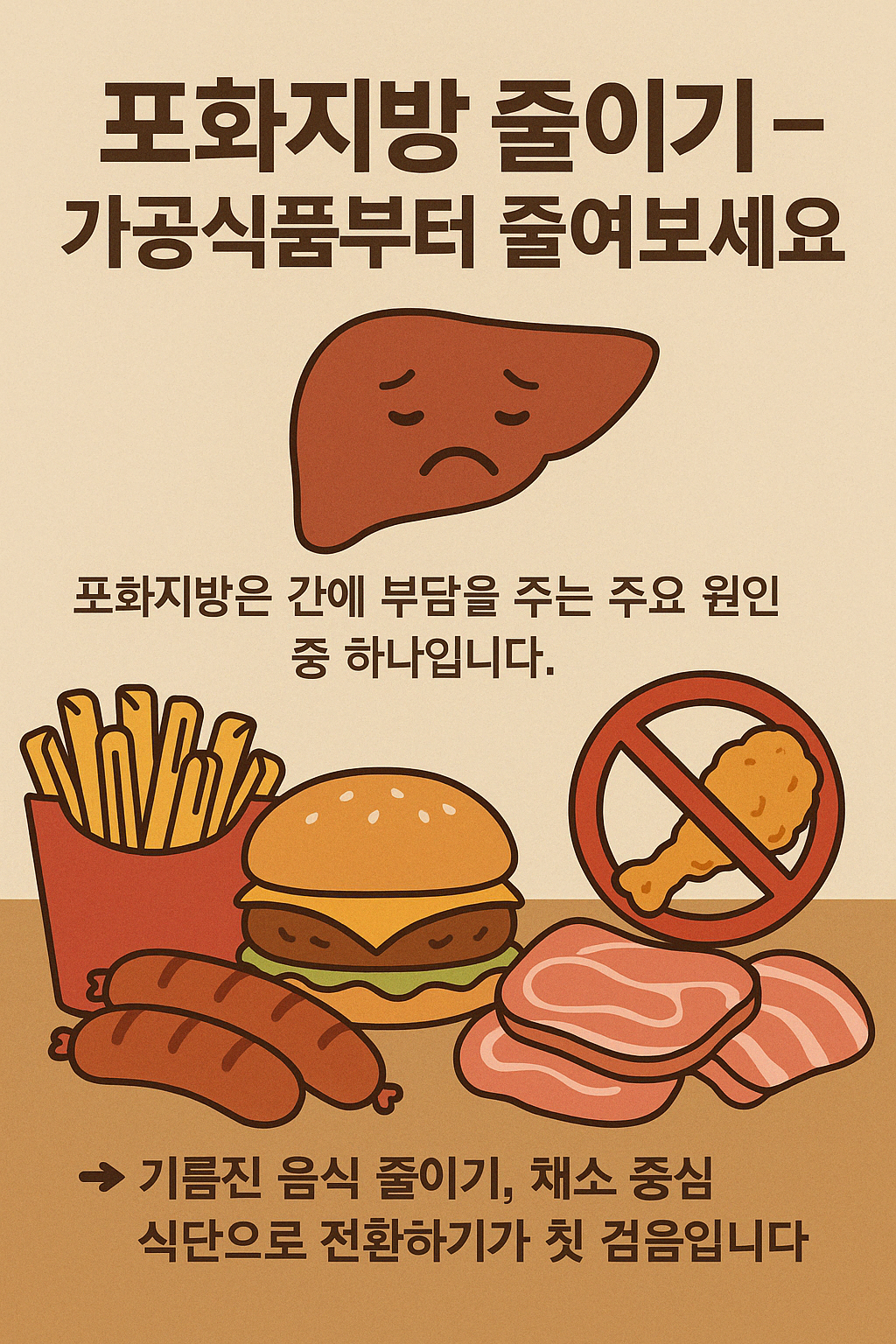 포화지방은 간에 부담을 주는 주요 원인 중 하나입니다.