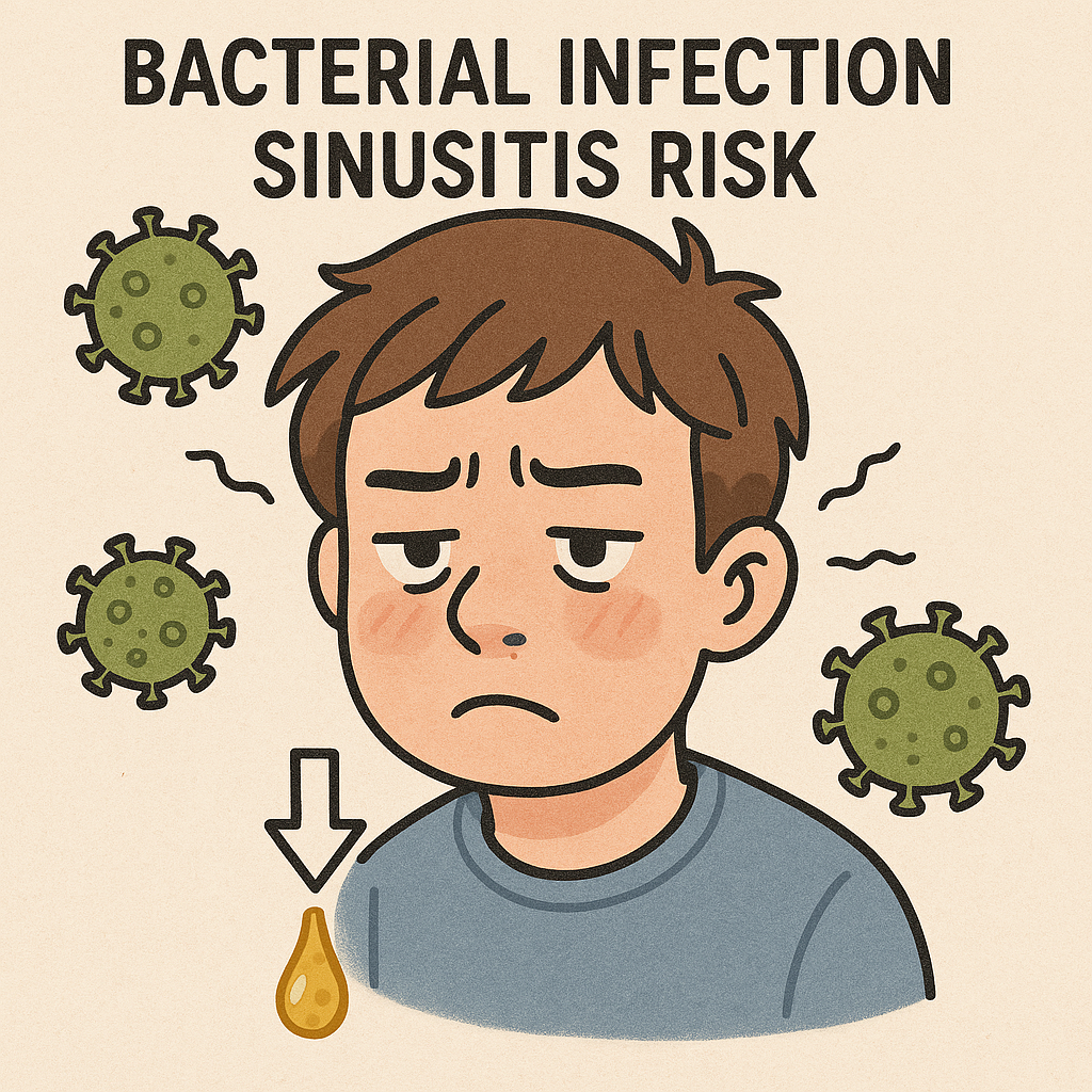 | 세균 감염 | 부비동염 가능성 | 계속 되고 끈적한 콧물 |