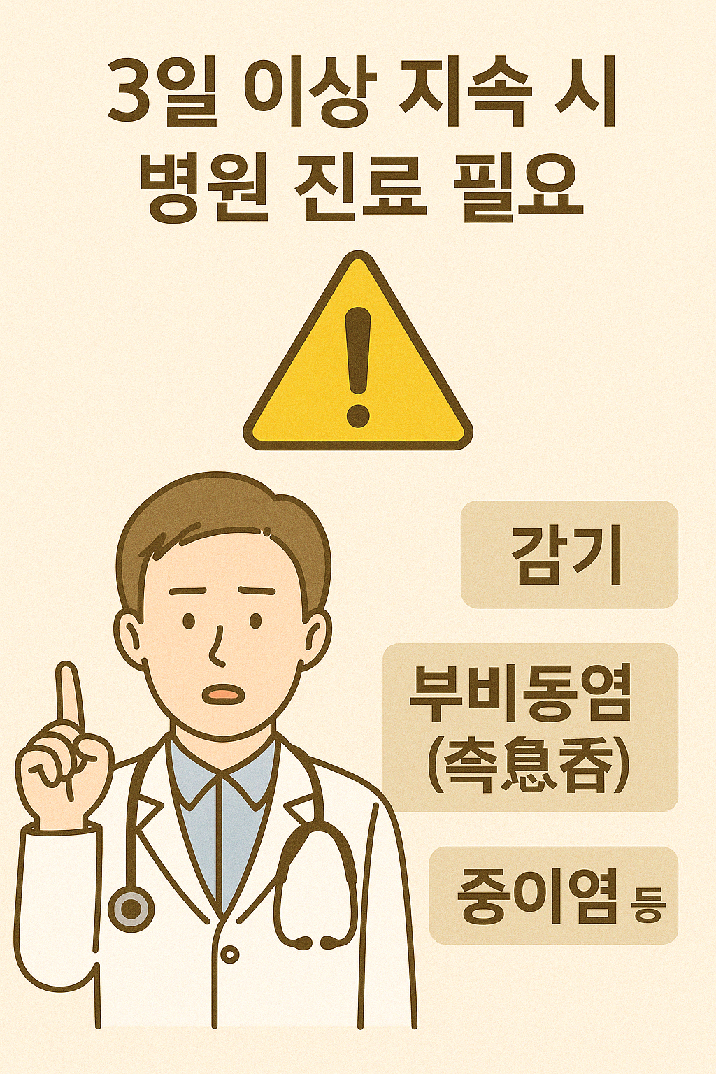 지속 기간 3일 이상 지속 시 병원 진료 필요