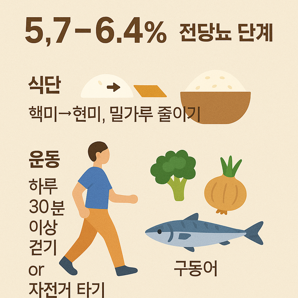 1️⃣ 5.7~6.4%: 전당뇨 단계