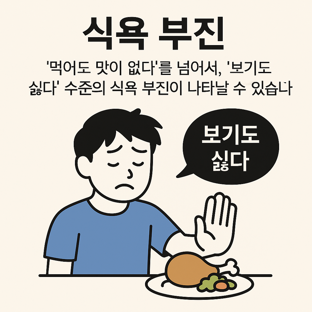 ‘먹어도 맛이 없다’를 넘어서, ‘보기도 싫다’ 수준의 식욕 부진이 나타날 수 있습니다.