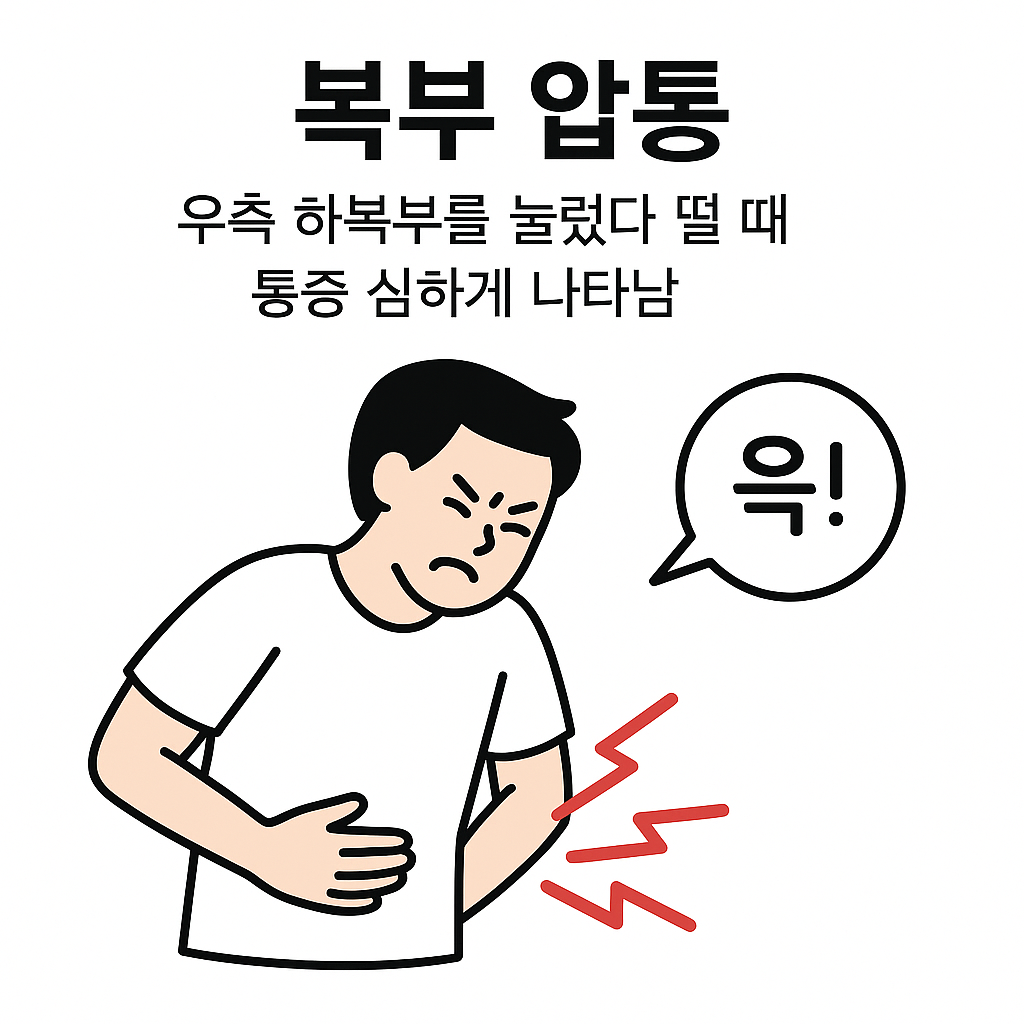우측 하복부를 살짝 눌렀다 떼었을 때 ‘윽!’ 하는 통증이 심하다면
