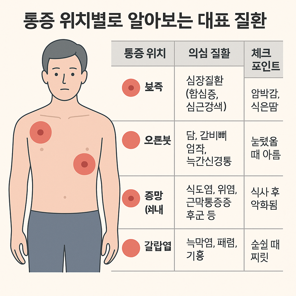 👉 통증이 30분 이상 지속되거나, 식은땀·숨참·현기증이 동반된다면 즉시 병원으로!
