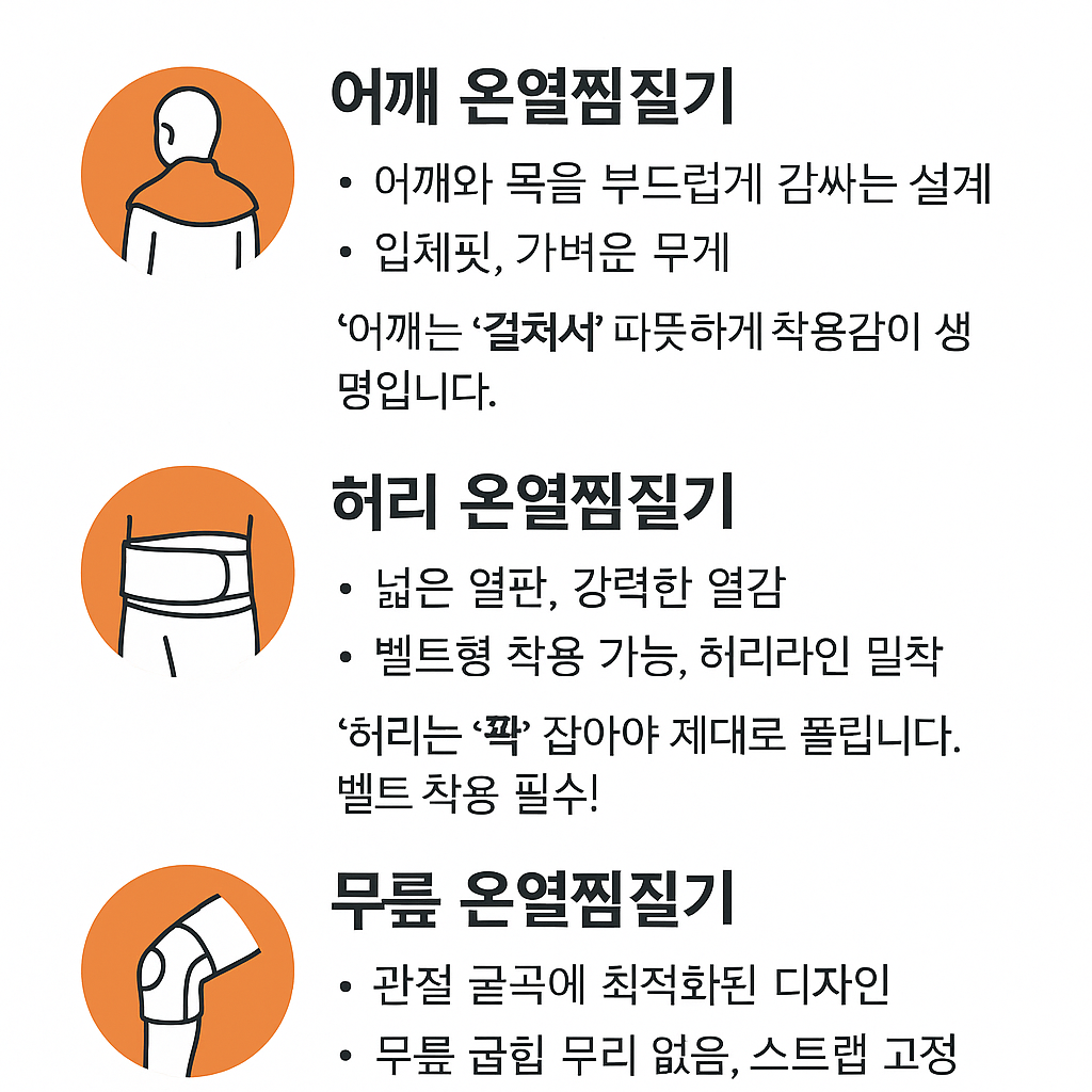 각 부위에 맞는 온열찜질기를 고르면 효과가 극대화됩니다.