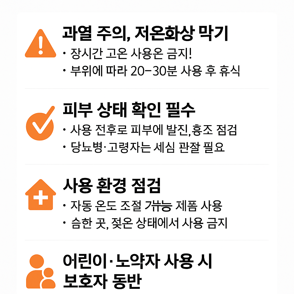 - 저온화상 예방을 위해 중간중간 피부 상태를 확인하세요.