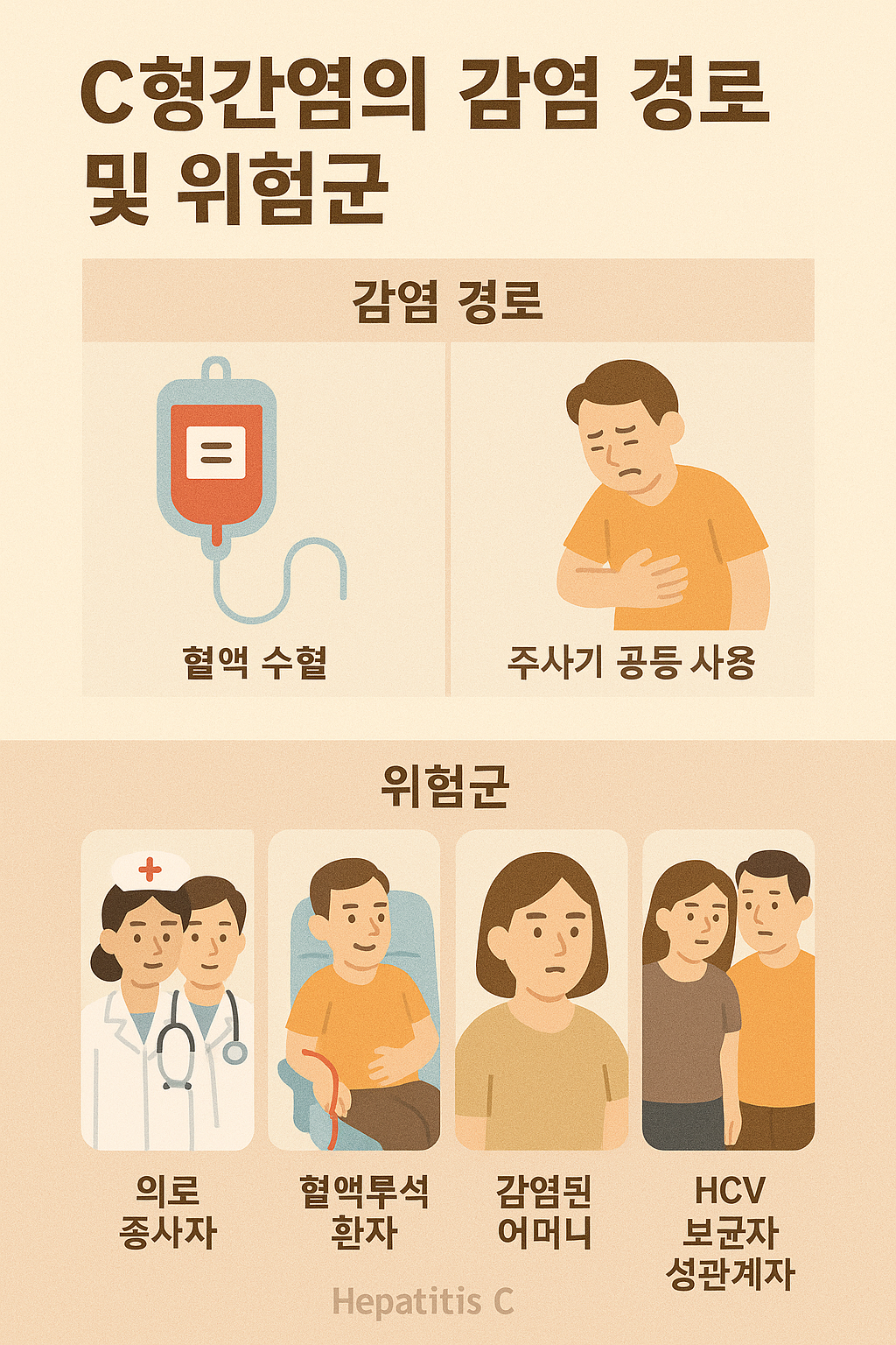 C형간염은 혈액을 통해 전파되며, 일상적인 접촉으로는 감염되지 않습니다.